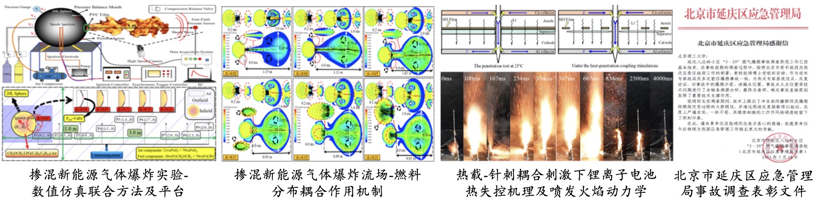 (8)2021.4.16,北京市丰台区大红门“4·16”储能电站爆炸事故调查(主要贡献:揭示了狭窄通道连通空间大规模锂电池热失控气体扩散、爆炸规律及毁伤特性);