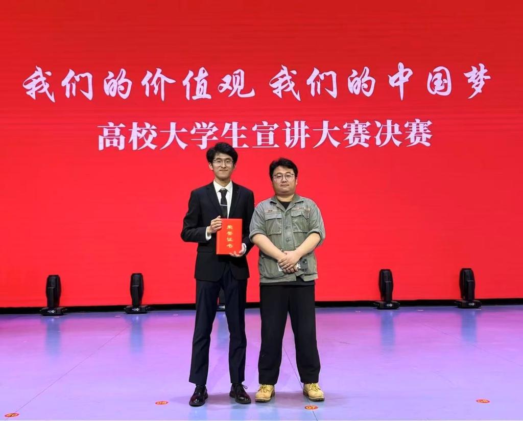 本次大赛决赛共有来自省内22所高校的32组选手参加,共计评选出一等奖3个、二等奖8个、优秀奖21个。自比赛启动以来,学校学院积极组织、认真备赛,经过学生报名、学院推荐、学校评审,最终刘士昊成功晋级。在决赛舞台上,他深情讲述了程卫民教授三十余载扎根矿山、潜心科研与育人的感人事迹,通过真实的故事再现,展现了程教授将论文写在祖国最需要的地方的科研担当,以及把生命活成一束光、照亮他人的师者情怀,为当代青年树立了精神标杆与价值榜样。
