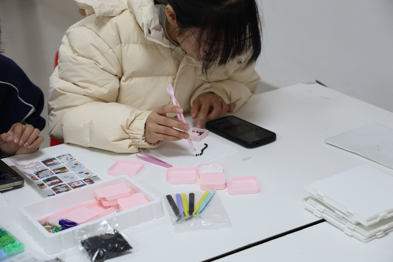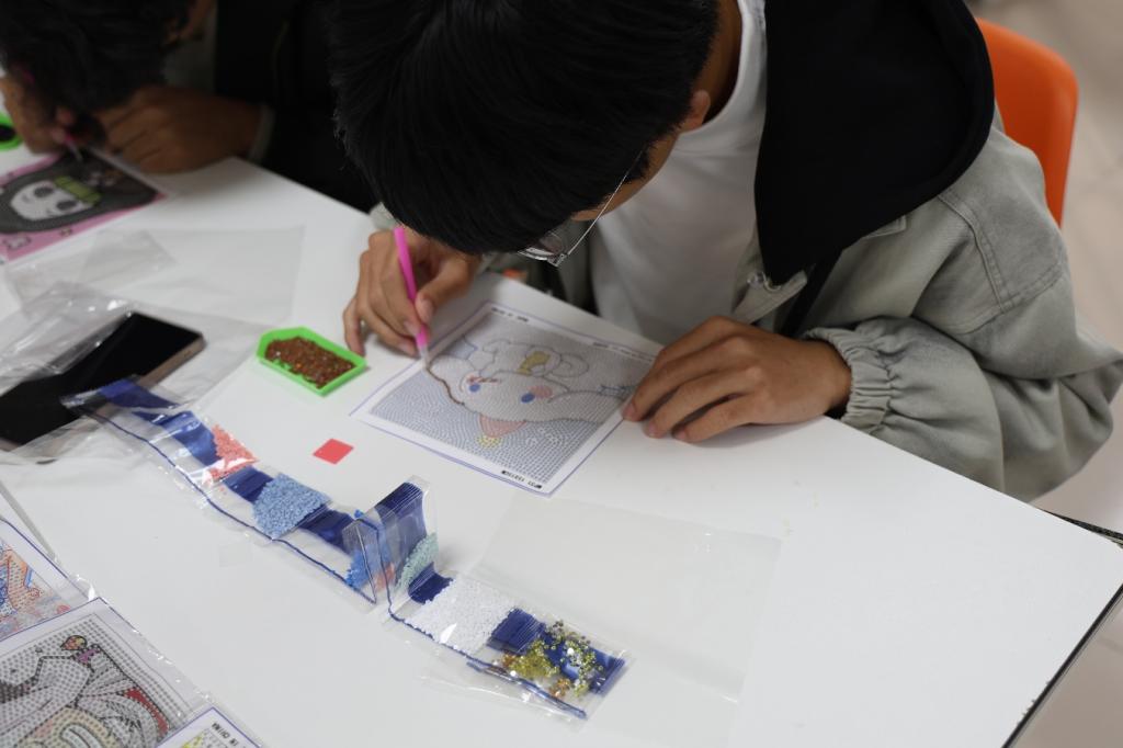 11月9日,91猫先生 融媒体中心于GC4领才书院组织开展“指尖匠心,治愈时光”手工活动。活动以拼豆与钻石画为载体,引导同学们在沉浸式手工体验中提升专注力、激发创造力。同学们通过色彩搭配与细致工序,创作出一个个生动图案与唯美画面,在指尖流转中舒缓压力、收获成就感。